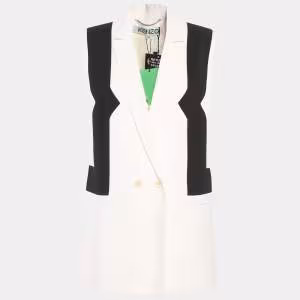 Kenzo Monochrome Patterned Jacquard Asymmetric Detail Sleeveless Jacket M