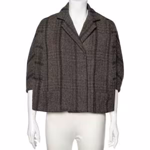 Marni Grey Checkered Wool Oversized Cropped Jacket M