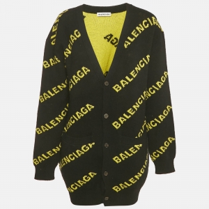 Balenciaga Black All Over Logo Wool Oversized Sweater S