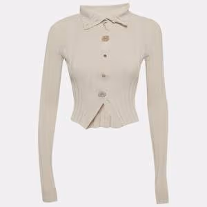 Jacquemus Beige Rib Knit Le Cardigan Bando S