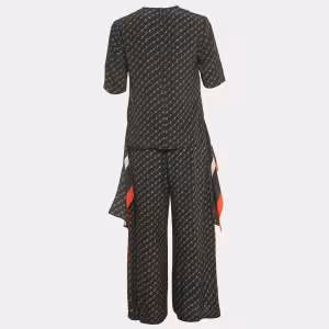Stella McCartney Black Printed Crepe Contrast Detail Shirt & Joggers Set M