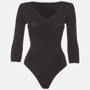Alaia Black Cotton Plunging Neck Hooded Bodysuit S