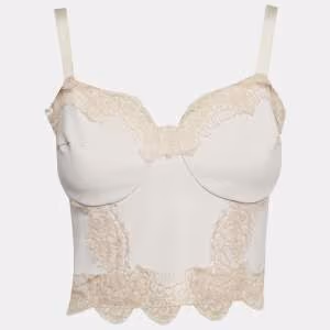 Elisabetta Franchi Gold Beige Satin Trim Crepe Lace-Up Top M