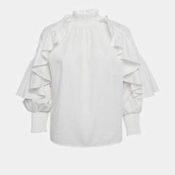 Maje White Textured Cotton Crochet Yoke Detail Blouse M