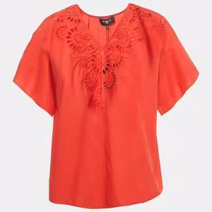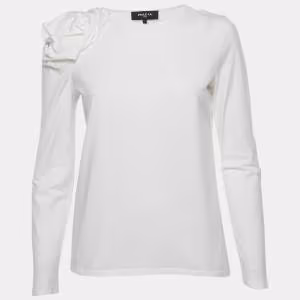 Paule Ka Off-White Floral Embroidery Cotton Top M