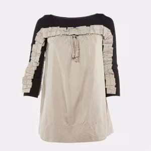 Paule Ka Beige/Black Satin and Jersey Ruche Top S