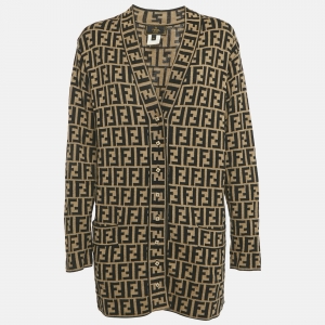 Fendi Vintage Brown Zucca Jacquard Knit Cardigan M