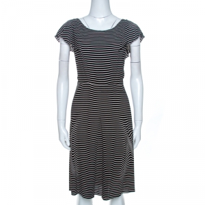 Prada Black Contrast Gold Leather Trim Long Sleeve Dress M
