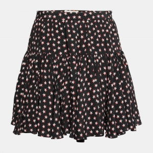 Saint Laurent Paris Black Star Printed Chiffon One Shoulder Mini Dress M
