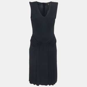 Louis Vuitton Black Wool Blend Lace-Up Neck Skater Dress M