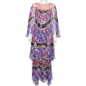 Chanel Multicolored Printed Silk Tiered Cape Dress M