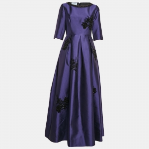 Prada Pink Printed Silk Floral Applique Duchess Shift Dress XL