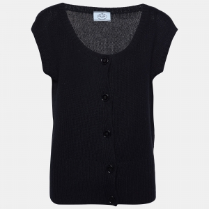 Prada Black Logo Embroidered Cotton Knit Sweatshirt XS