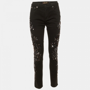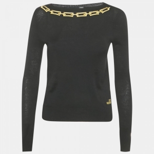 Versace Black Crepe Lace Detail Maxi Dress M