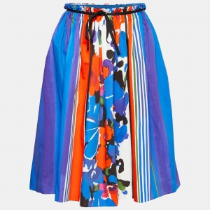 Red Valentino Blue Printed Cotton Paper Bag Waist Detail Midi Skirt M