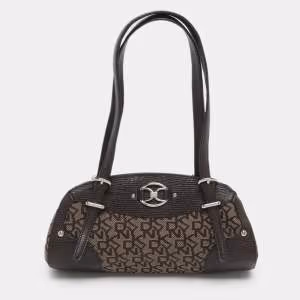 DKNY Brown Signature Canvas And Lizard Embossed Leather Satchel