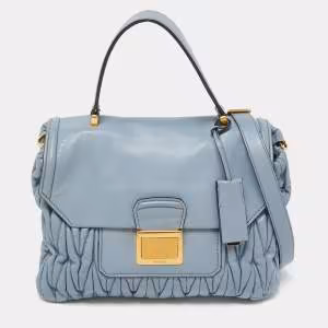 Miu Miu Navy Blue Matelassé Leather Pushlock Flap Top Handle Bag