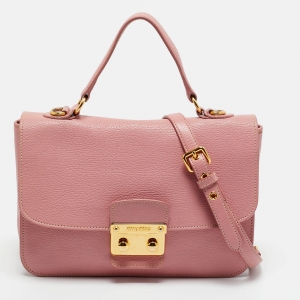 Miu Miu Pink Leather Pushlock Flap Top Handle Bag
