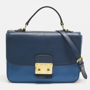 Miu Miu Black/Blue Matelasse Leather Top Handle Bag