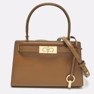 Tory Burch Brown Leather Petite Lee Radziwill Top Handle Bag