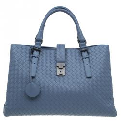Bottega Veneta Blue Intrecciato Leather Small Roma Tote