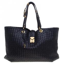 Bottega Veneta Blue Intrecciato Leather Medium Roma Tote
