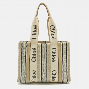 Chloe Beige/Brown Canvas Medium Woody Tote