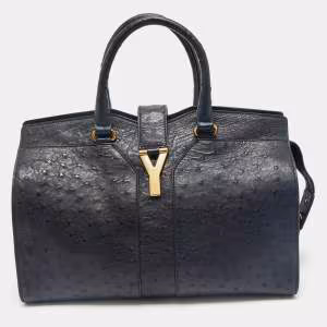 Yves Saint Laurent Navy Blue Leather Medium Cabas Chyc Tote