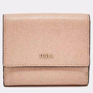 Furla Black Glossy Leather Logo Trifold Compact Wallet