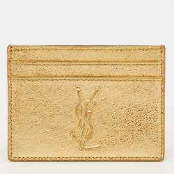 Saint Laurent Metallic Matelassé Leather Monogram Card Holder
