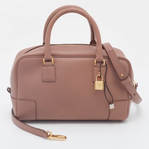 Loewe Metallic Grey Grained Leather Small Amazona Satchel