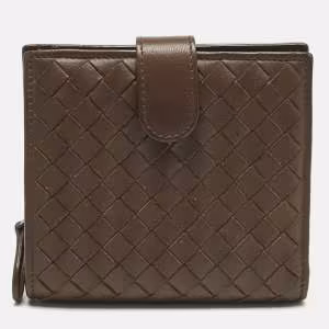 Bottega Veneta Grey Intrecciato Leather Flap French Wallet