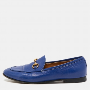 Gucci Blue Leather GG Cage Flat Thong Sandals Size 37
