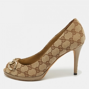 Gucci Pink GG Canvas and Leather Cap Toe Low Top Sneakers Size 37.5