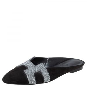 Hermès Black Suede Roxane Mule Sandals Size 38