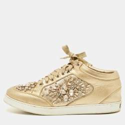 Jimmy Choo Hawaii Size 38.5 Brown Suede Stud Embellished Low Top Sneakers