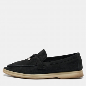 Loro Piana Black Suede Summer Walk Loafers Size 38.5