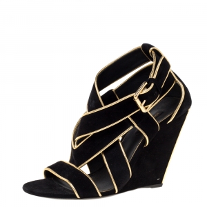 Louis Vuitton Black Monogram Suede Wedge Ankle Boots Size 36.5
