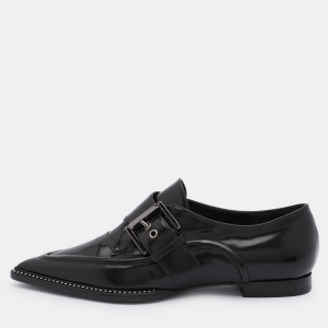 N21 Black Leather Crystal Embellished Buckle Loafers Size 38.5