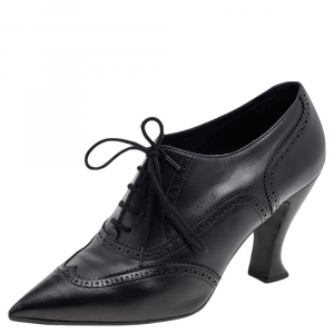Chanel Black Leather And Shearling Lace-Up Ankle Boots Size 36.5