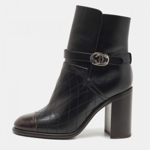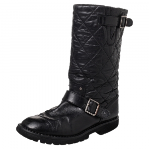 Chanel Black Quilted Coated Fabric And Leather Mid Calf Boots Size 38