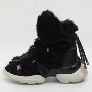 Moncler Black Leather and Shearling Trailgrip Apres High Boots Size 38