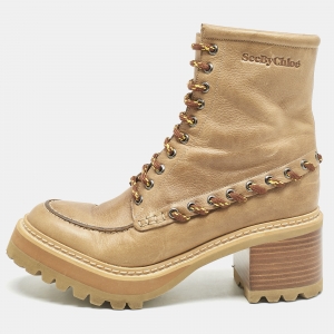See by Chloe Beige Leather Ankle Lace Up Boots Size 39