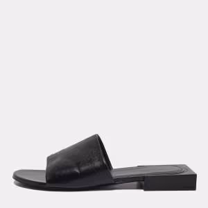Balenciaga Black Leather Logo Box Flat Slides Size 38