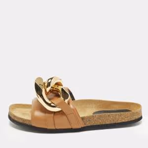 J.W.Anderson Chain Link Size 42 Brown Leather Flat Slides