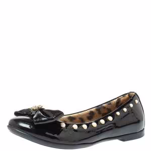 Roberto Cavalli Black Patent Leather Embellished Bow Ballet Flats Size 37