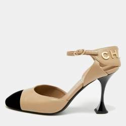 Chanel Black/Beige Quilted Patent Leather CC Pumps Size 36
