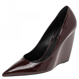 Nicholas Kirkwood Burgundy Patent Leather Wedge Pointed Toe Pumps Size 40