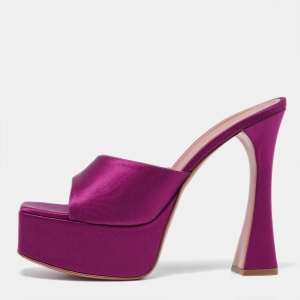 Amina Muaddi Black Satin Dalida Platform Sandals Size 39