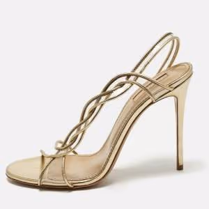 Aquazzura Swing Size 40 Gold Leather And PVC Slingback Sandals